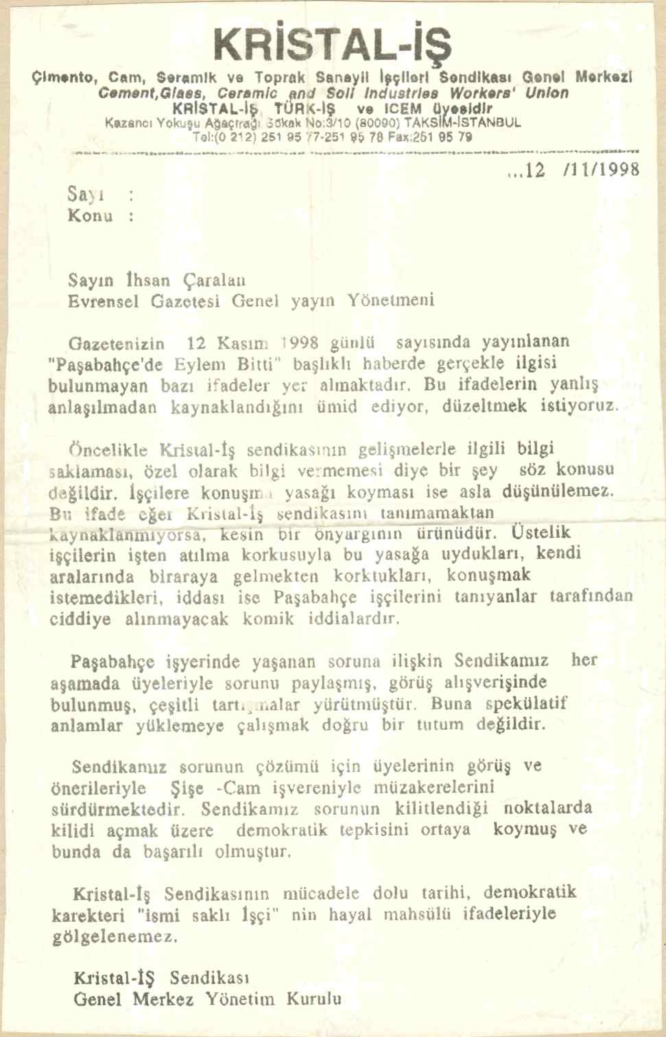 Beykoz Haziran Hareketi direnen Cam iþçilerinden Ýsmail Yýlmaz ile yaptýðý röportaj :